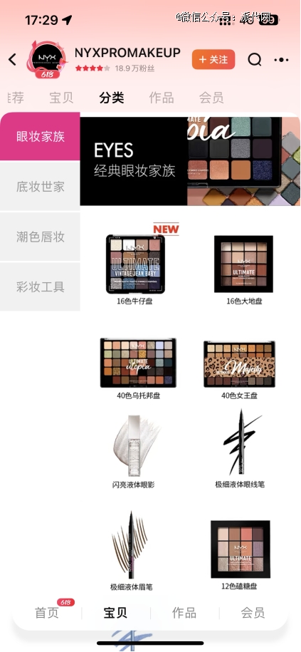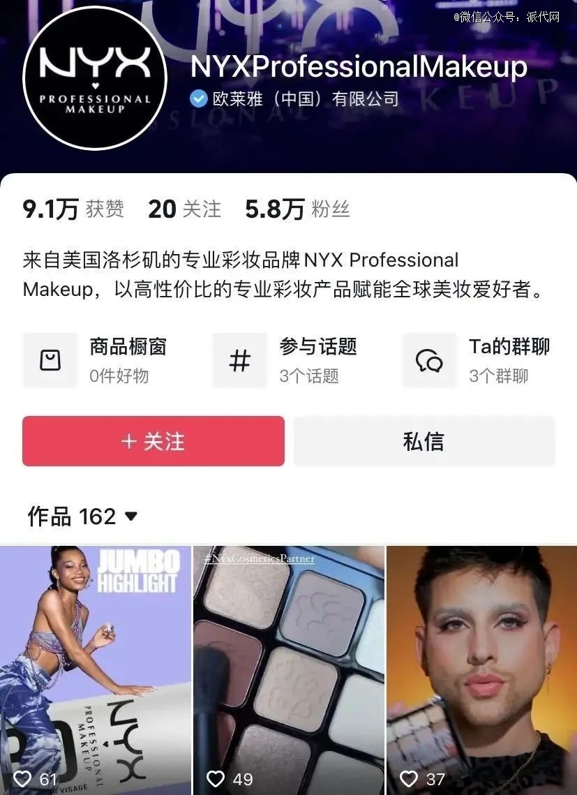 派代领会到,NYX是确立于1999年的美国彩妆品牌,2017年被欧莱雅团体收购,产物线包罗遮瑕、口红、眼影、美妆工具等,售价为23.8元-284.8元不等。在消费者中,它是“MAC”的平替。