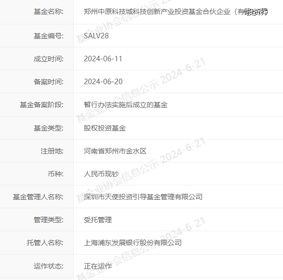 新闻,6月20日,郑州中原科技城科技创新产业投资基金合资企业(有限合资)(以下简称中原科创母基金)在中基协立案。