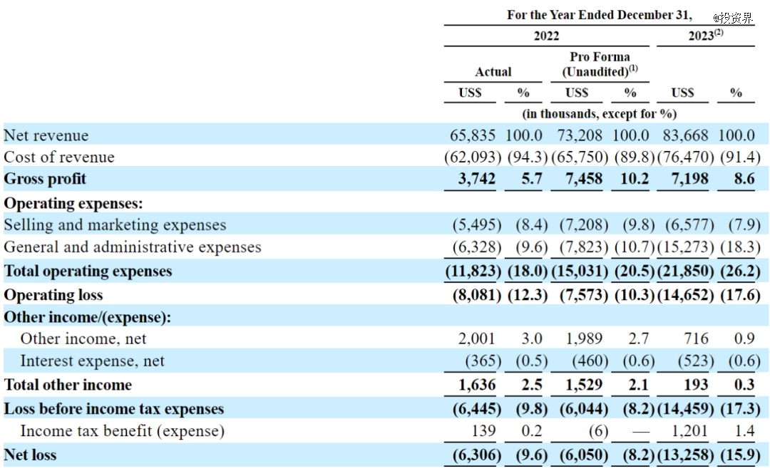 在此基础上,星竞威武团体从 2022 年的 6580 万美元(约4.7亿元人民币)增至 2023 年的 8370 万美元(约 6亿元人民币);毛利从 2022 年的 370 万美元(约2700万人民币)增至 2023 年的 720 万美元(约5200万人民币),同年的毛利率划分为 5.7% 和 8.6%。