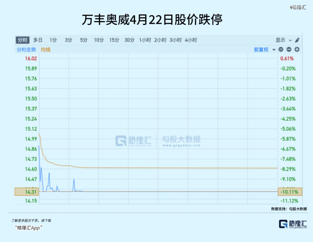 4月22日,万丰奥威股价封死在跌停板,封单金额高达4.75亿元。