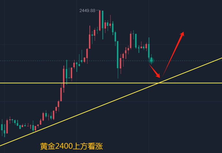 黄金昨天整体走势照样偏强势,稀奇是亚盘一起强势上涨,虽然强势,但中途都是有小幅的回落给上车的时机,而我们白盘给出了2428的多单迎来暴涨止盈2440.随后行情回撤再次给出2437的多单止盈2446,欧盘并没有延续上涨,而是走出震荡回落,对于这样的走势,美盘我们一定是看探底回升的,但这个探底的力度一如上周,都是探深底,直接从2447跌至2407,这样的走势实在难以操作,看空不合适,看涨止损空间太大,我们昨晚依然是坚定的持有多单没有止损去看反弹,午夜止盈2437,异常的精准,看准了偏向就要勇敢去做。
