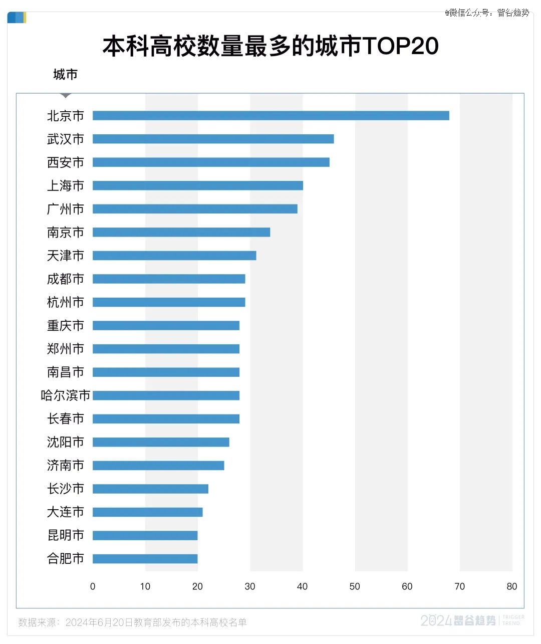 停止2023年底,天下共有本科学校1275所,高职院校学校1547所。本科院校主要集中在北上广、武汉、南京、西安等都会。