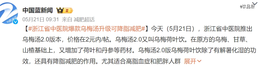 从去年的酸梅汤到今年的乌梅汤,近两年饮品界的顶流“中药味”十足!