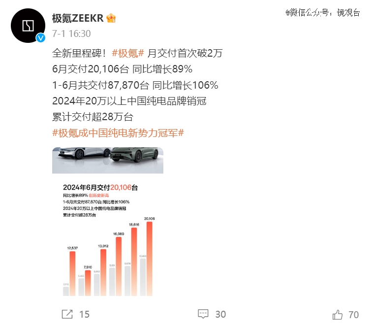 图/极氪月交付破纪录 泉源/微博 镜观台截图