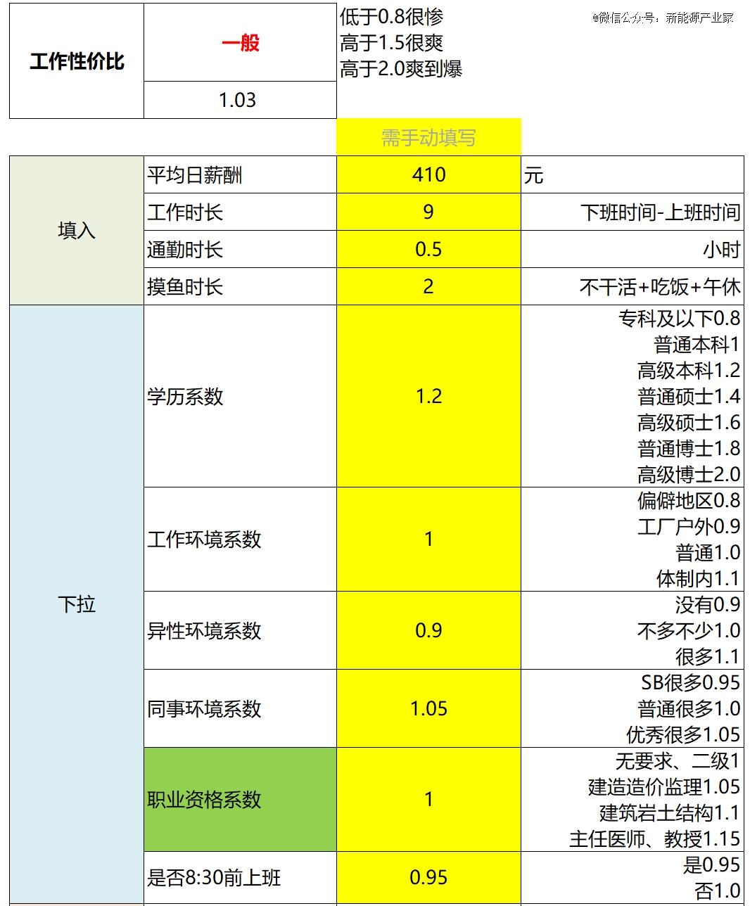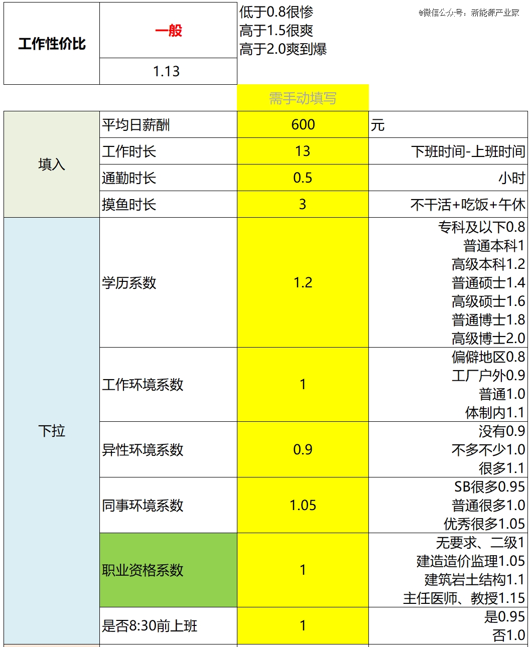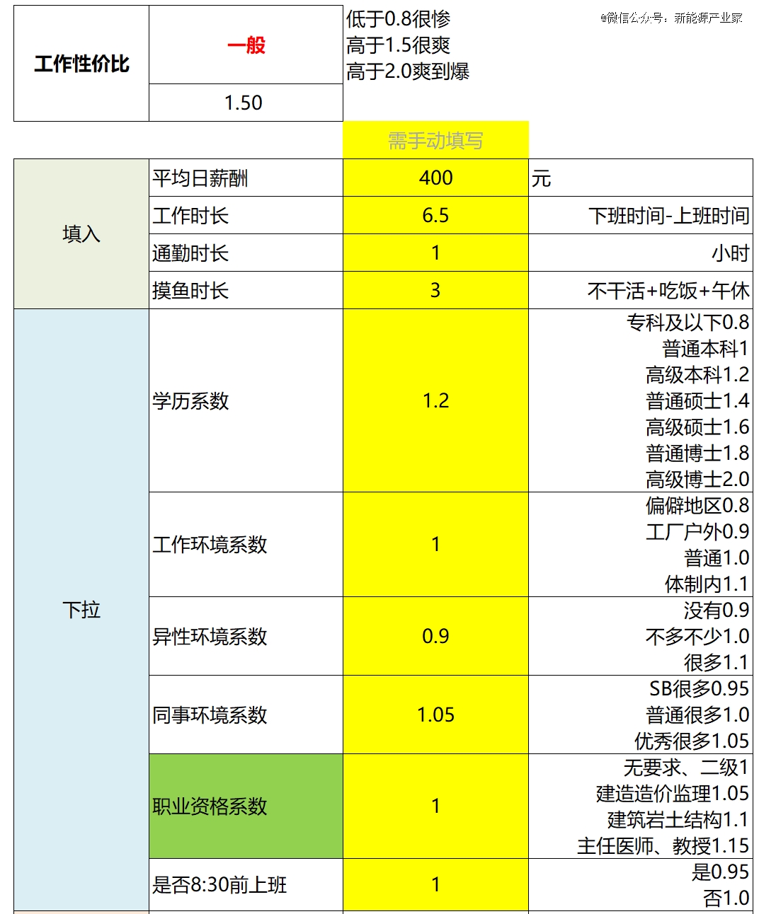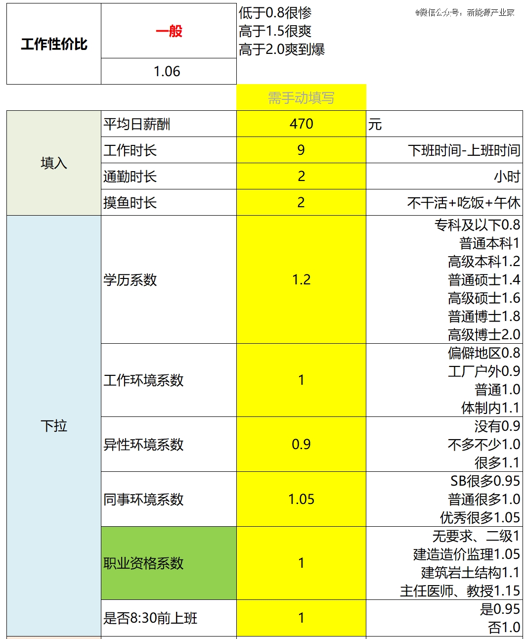 填写好各项数字后,最终算出来的数值决议了你这份事情的性价比: