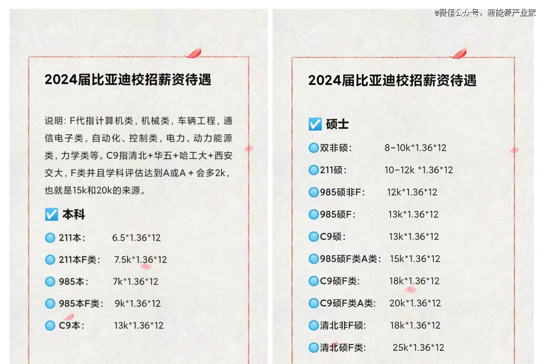 对于校招而言,比亚迪不仅会区分求职者的学历、学校,甚至差其余专业和学科也会有所差异。