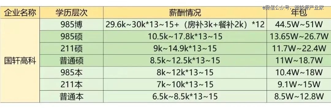 而从薪资上来看,国轩高科的薪资在新能源行业属于正常水平,985本科大学生的年包在10-18万左右。