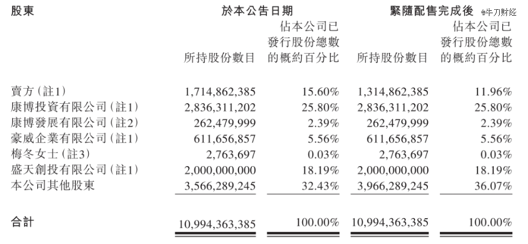 配售完成后,盈新国际在波司登的持股比例将从15.60%下降至约11.96%,高德康通过康博投资、康博生长、豪威、配偶梅冬、盛天创投共计持股比例为64%,仍保持控股职位。