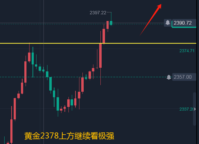 从日线来看,收取一根大阳,而且均线上继续保持多头排列,那么后市依然是坚定的看涨,多头已经腾飞,之前悬壶说只要不破日线MA10所有的回撤都是上车的时机也最先兑现,而金价也是上破了三角整理区域,顶底转换位置2378不破都看强势。对于现在的行情来说就要关注H4的MA10,只要这里不破行情就会一直延续单边的强势,跌破走震荡,这一点人人要明了。而早间的急涨不要去追,只管等回撤再多。支持关注2384周围相对稳健去多,给2379加仓,防守2374,看2395-2400。重点照样欧盘的强弱,欧盘强,美盘前回撤继续多;欧盘弱,美盘也是看探底回升,而现在多头腾飞,你可以不看涨,但万万不要去空!