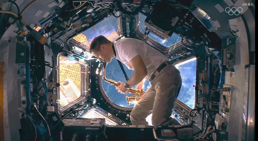 著名的《马赛曲》贯串整支宣传片,时年43岁的法国宇航员托马斯·佩斯盖(Thomas Pesquet)飘浮在国际空间站,演奏萨克斯为整段旋律作结。透过他身侧的舷窗,蔚蓝的地球置于众多宇宙,远大与具象、科技与艺术、远与近相得益彰,这一惊艳天下的画面也彰显了法国人在这届奥运展现美感的雄心。