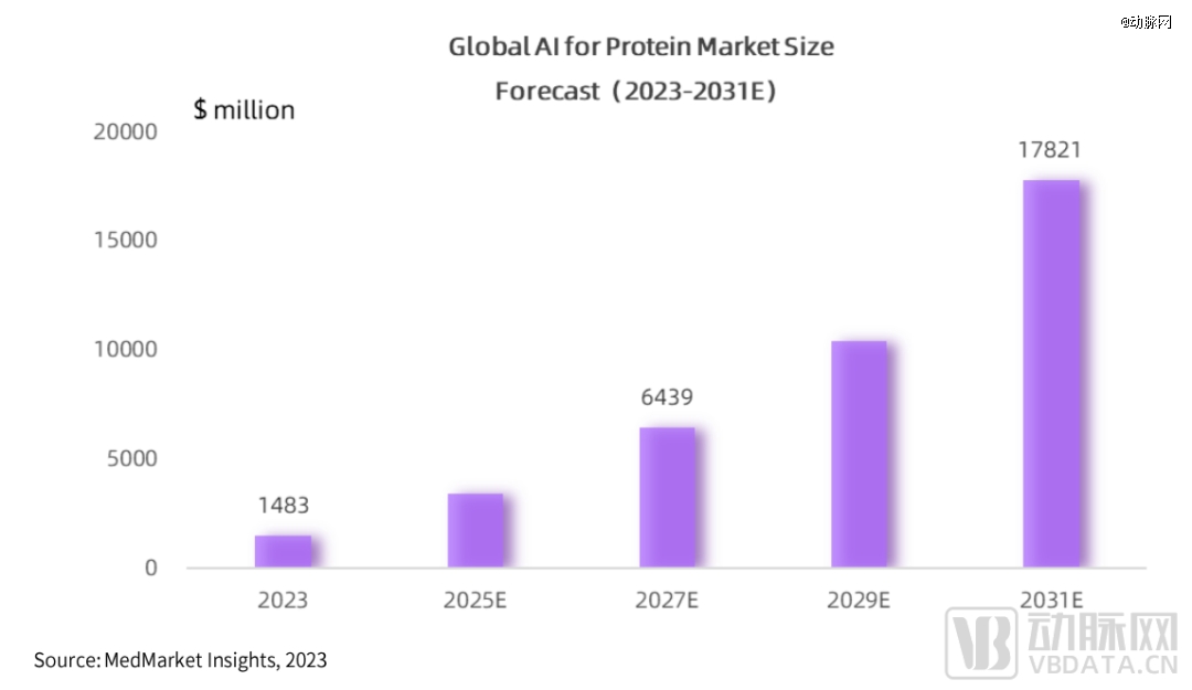 后续,得益于更多企业的进入与新的可能性发生,“AI 卵白质”在行业端的应用会迎来更大希望,市场空间将不停拓宽。据MedMarket Insights测算,2023年AI卵白质市场规模已达14.83亿美元,预计到2031年市场规模将增进至178亿美元,年复合增进率约为36.5%。