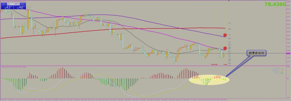 通过对原油4小时图剖析得知,昨日行情准期冲高回落到达下方77.60一线止跌反弹,短期受交割期影响泛起无厘头行情属于正常情形,我们从下方的幅图可以清晰的看到现在MACD依然还在零轴下方运行虽然下跌的动能有所减缓然则短期整体空头趋势当中,短期我们重点关注1,2号的均线压制,下方继续做嗲你关注77.80和76.80的一线支持,在操作上我们继续高空低多思绪,详细建议如下: