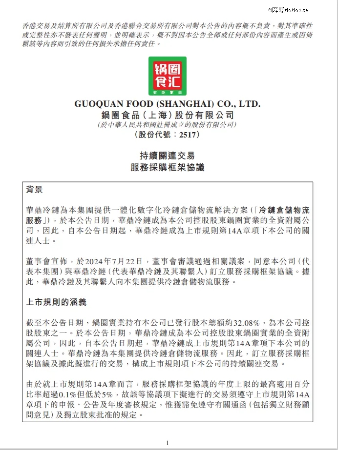 7月22日,锅圈食物股份宣布通告称,其控股股东上海锅圈实业全资收购河南华鼎冷链仓配科技有限公司(下称「华鼎」),持股比例100%。这是在锅圈投资治理宣布战略投资、产业赋能小板凳街坊暖锅、围辣小暖锅、郑喜旺烧烤、伍学长现烤串夹饼四家餐饮零售品牌一周后,锅圈的又一次脱手。