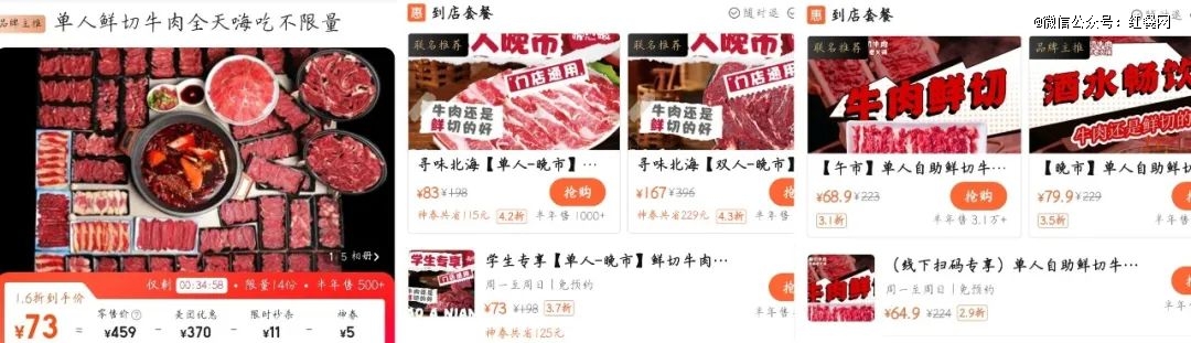 另有不少潮汕牛肉暖锅店推出了9.9元的鲜牛肉产物;海鲜放题店推出了68元牛肉牛腩单人自助;日式烧肉店推出包罗和牛的一人食套餐,仅需48元……
