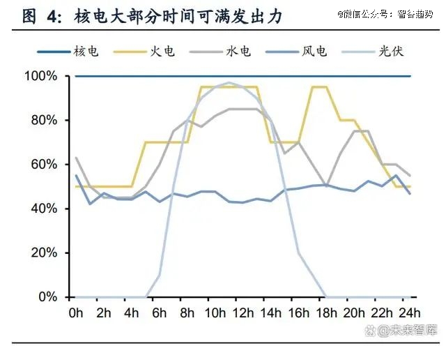 核电不受外界天气、季节、自然资源等环境因素影响,除检修外,全天出力可维持100%。根据中电联的数据,过去10年内,全国核电平均利用小时数均稳定在7000小时以上,在2023年更是高达7670小时,约为风电的3.45倍、火电的1.72倍、光伏的5.96倍。