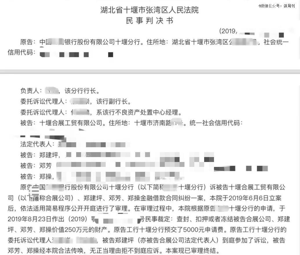 郑父曾被银行告上法庭。(图/裁判文书网截图)