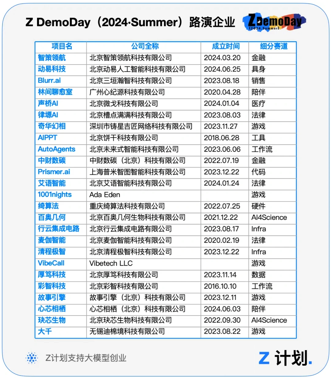 图|8月4日路演企业名单,图源/智谱AI“Z设计支持大模子创业”