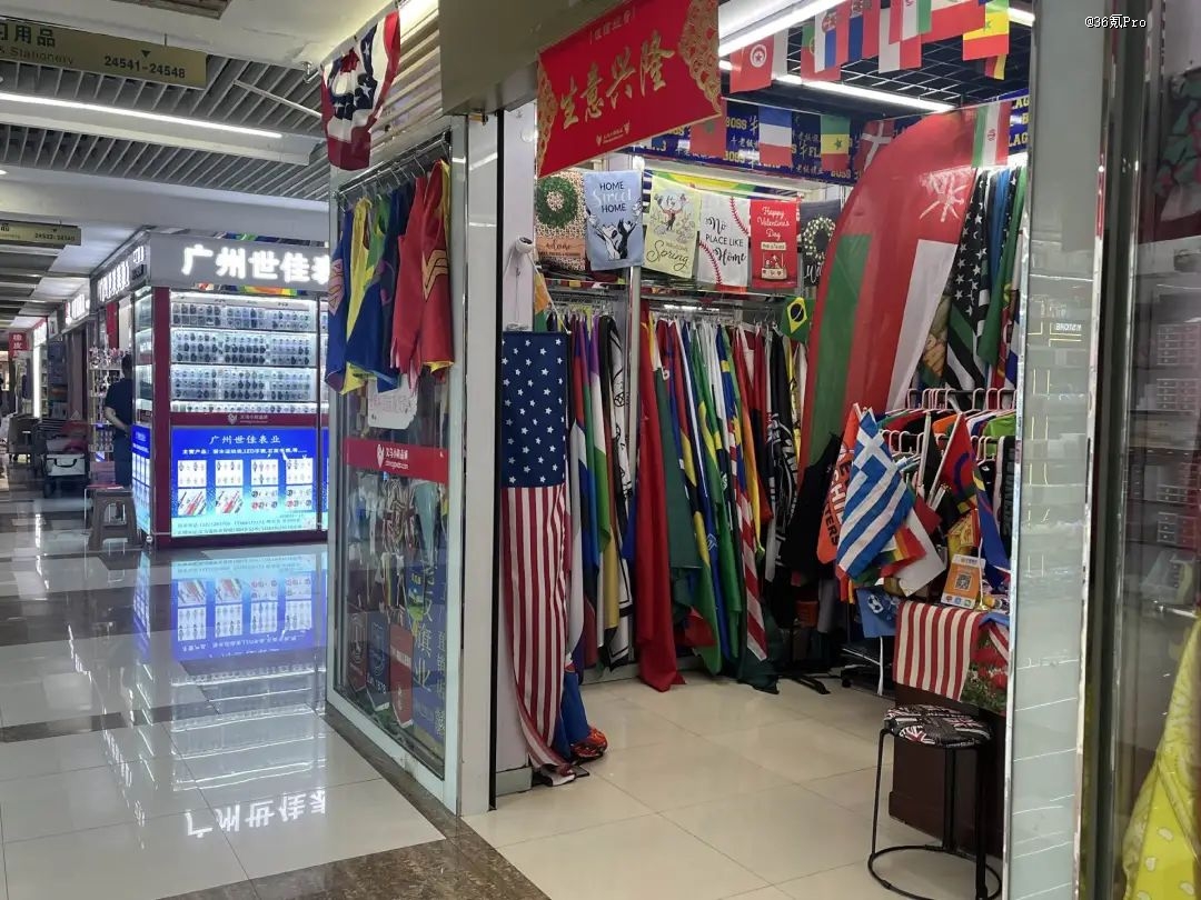义乌的国旗外贸商铺,作者拍摄