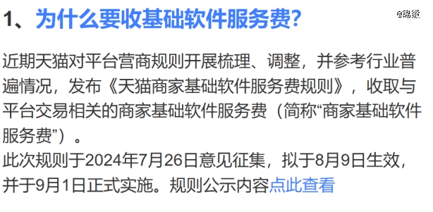 淘天宣布,向所有商家收取订单成交额0.6%的“基础软件服务费”,同时退还24年年费。