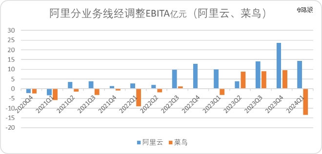 图:阿里分营业线经调整EBITA数据,泉源:企业财报