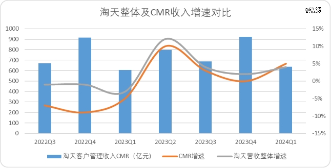 而CMR实在就是已往一个周期内淘天显示一样平常的环节,CMR增速耐久低于淘天大盘增速(仅在上一季度反超1pct),阿里一定会想设施填补CMR收入差。