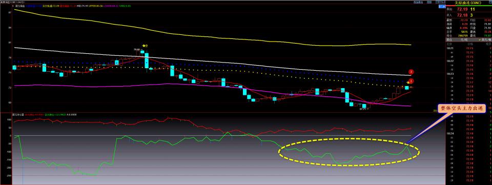 通过对原油4小时图剖析得知,昨日行情去继续延续反弹走势,晚间到达双轨的压制冲高回落现在再次靠近双轨的压力以及布林带中轨的压力,我们从下方的附图可以清晰的看到整体是空头主力大量出逃导致行情被动式反弹,多头主力介入的力度不够,短期依然是处于下跌趋势中,冲高回落的可能性大,短期在操作上我们继续高空低多思绪,详细建议如下: