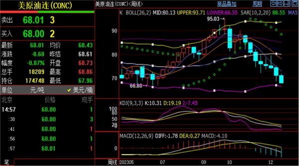 原油手艺面剖析:期货原油下跌相符刘铭诚预期,早在周评总结里就给出了偏向,73阻力和68支持,刘铭诚优先看跌至下方支持点。三天的慢涨抵不外昨夜美盘一个小时的下跌,这种趋势行情做起来很顺,根据心理预期的盈利局限逐步建成就能有收获。现在原油实时报价68.2一线,下方能看到的支持参考日线布林带下轨67.5位置,日线误差带指标下轨重合小时线布林带下轨延伸至67关口,小时线尺度误差带下轨延伸线支持点在66.5位置,万一破位67-66.5容错支持局限,那么短线已经看不到支持情形,更下方能参考的支持点就是斐波那契回撤工具50位置64.7一线。