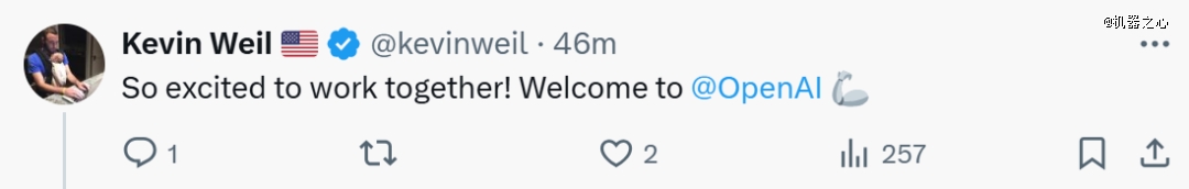 感谢 OpenAI 团队、Sam、Kevin Weil 以及我在工程和其他领域的朋友和同事!」