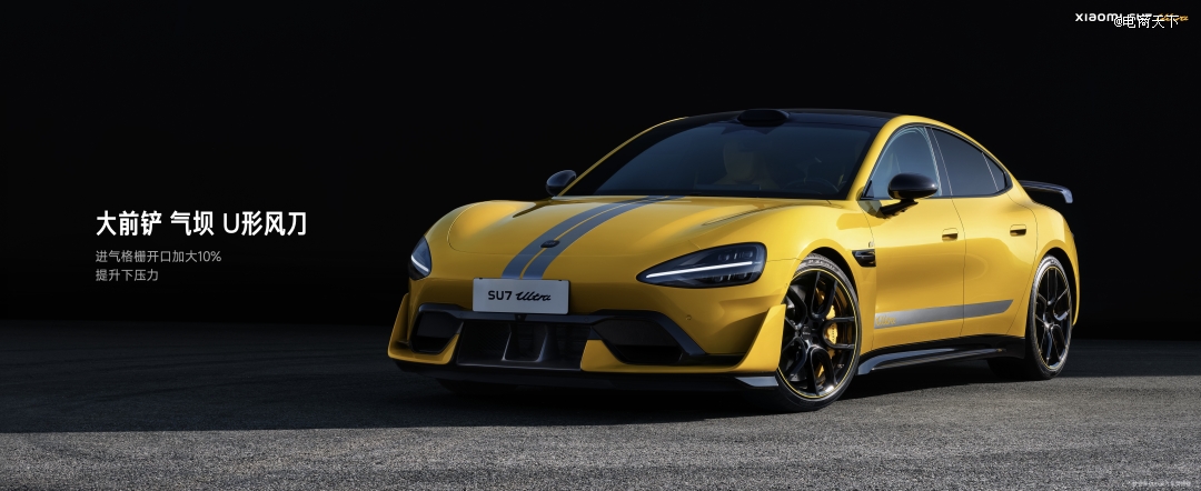 具体来看,外观上小米SU7 Ultra可街可赛,车身加长到5.1米,车头有超大前铲,很霸气;侧面比小米SU7 更低趴、更修长、更运动;车尾配备定制超大固定式碳纤维尾翼,十足一副“西装暴徒”的形象