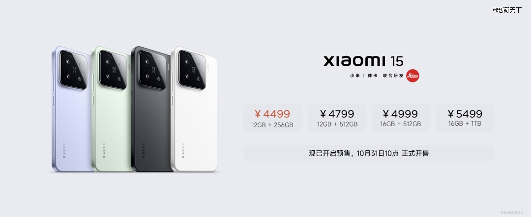 小米新旗舰价格再创新高,小米15起售价4499元。
