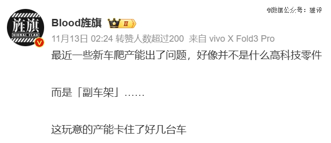 一般车子产能跟不上,不都是因为什么电池、芯片或者啥传感器这种新技术的零件缺货么。但有博主透露,最近有些车的产能出问题,是因为副车架这个传统零件。