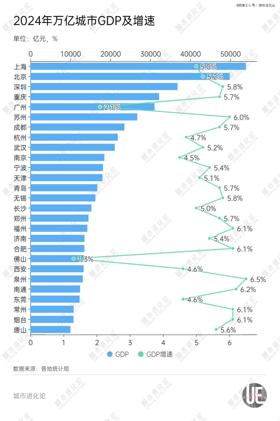 2024年,广州GDP增速仅2.1%,在万亿城市中排名倒数第二。广州统计局称,受燃油车占比较大影响,汽车制造业仍处低位。