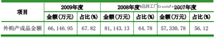2007-2009年巨星外购产物金额及占比,泉源:巨星科技招股书