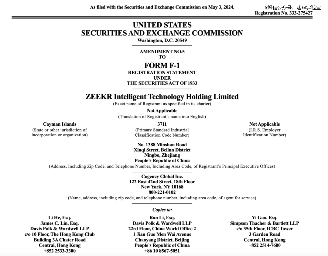 极氪刚刚提交更新后的招股书,按设计最早于5月10日在纽交所挂牌上市。