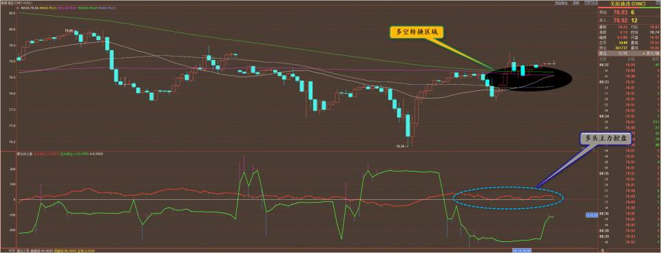 原油78.20和76.90划分做多,止损各70点,止盈各200点;
