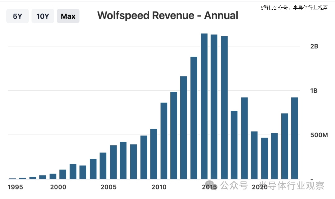 作为SiC衬底的先驱和市场*,Wolfspeed近年来履历了频仍瘦身、营业转型,成为一家专注于SiC的厂商。然则业绩似乎有点不温不火。