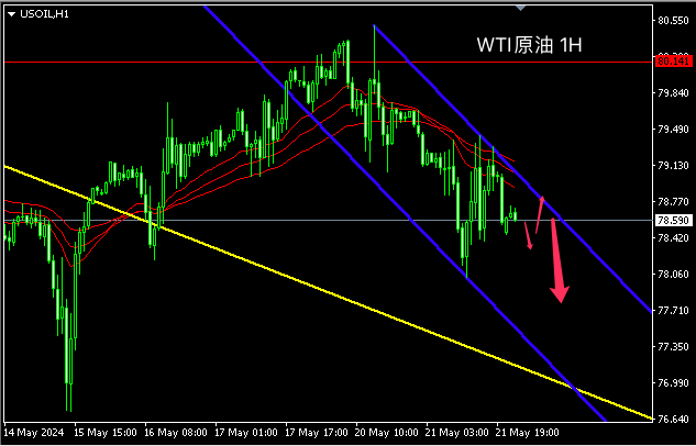 原油从日线图级别看,油价触及76.70获得支持,呈震荡整理节奏。从两波着落再收复反弹的力度看,多头动能逐步走强。油价仍受到均线系统压制,中期客观趋势向下稳固,但主观节奏存在反弹向上的趋势,预计中期走势有望泛起回升的概率较大。
