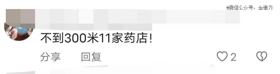 一条500米长的街道能开7家药店,药店数目最多的广东,另有“药店一条街”,300米之内开店11家,比奶茶店还多。