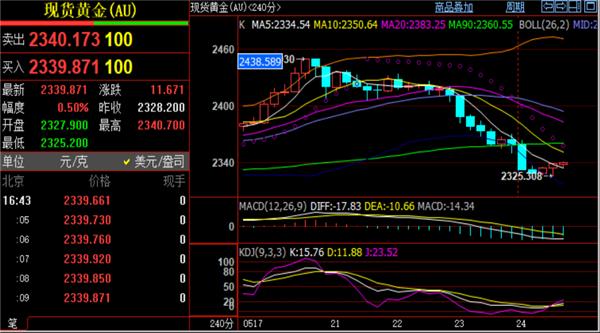 黄金实时行情剖析:本周黄金2417开盘,周初高点触及2450一线转下跌,周五亚盘低点给到2325短期止跌,本周行情涨跌走势跨度极大,参考周线看跌孕线形态控盘,反弹力度预计不会很大。今日阻力关注1小时布MA30均线位置2345压力点,4小时MA120均线与MA30均线粘合承压2348,1小时MA5均线重合周线MA5均线位于2355一线,防守阻力看4小时误差带上轨2360关口,没破之前维持高空建仓。