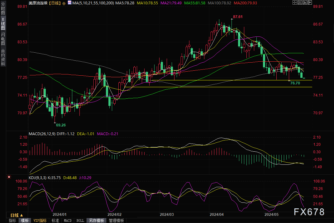 汇通财经APP讯——周四(5月23日)亚市早盘,美原油在一周低位倘佯,现在交投于77.22美元/桶周围。油价周三收低逾1%,延续第三日下跌,美联储官员示意通胀连续可能推迟降息,这重新点燃了人们对石油需求的担忧。
